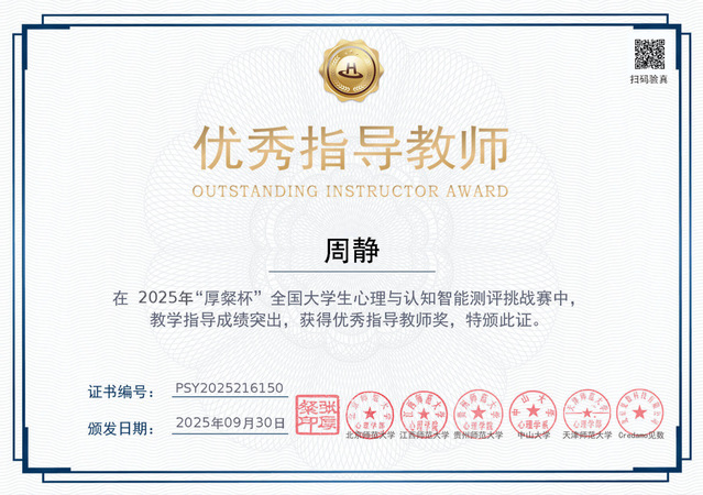 教育学院应用心理学专业本科生团队在首届“厚粲杯”全国大学生心理与认知智能测评挑战赛中荣获全国二等奖