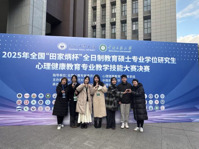 10月17日至19日,2025年全国“田家炳杯”全日制教育硕士专业学位研究生“心理健康教育”专业教学技能大赛决赛在东北师范大学成功举办。本次大赛决赛共有来自全国69所高校的189名选手,经过激烈角逐,最终评选出一等奖18名、二等奖36名、三等奖78名,优秀教学设计奖57名。我校教育学院心理健康教育专业硕士研究生刘书言、唐紫璇、熊思蔓荣获三等奖,陆奕元、杨武荣获优秀奖。孙远老师与余香莲老师作为现场带队老师,全程悉心陪伴,为选手们提供了有力的专业支持与精神鼓励。