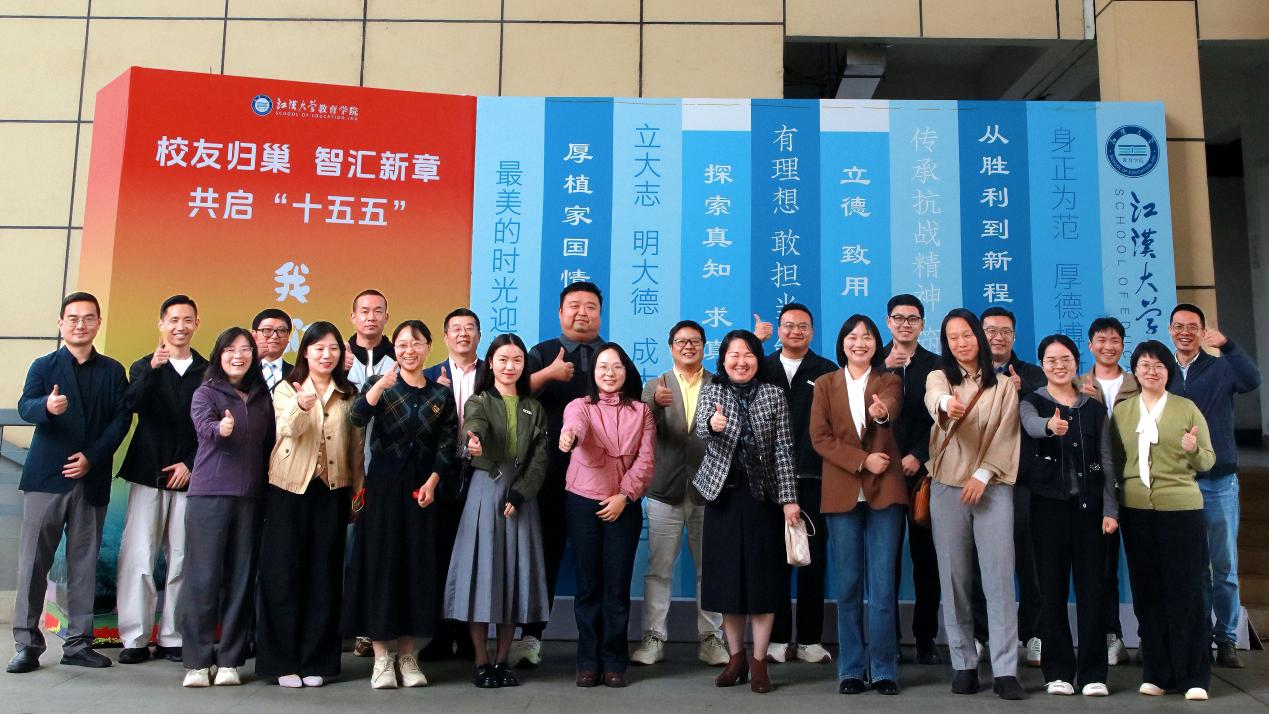 时光淬金,情谊不改。金秋十月,共话同窗情。10月18日上午,江汉大学“校友回归”暨“校城融合”高质量发展大会于学校科创大楼江大厅召开,教育学院近20名校友自全国各地重返母校,与师生共赴校地发展盛会。下午,教育学院以“叙旧情、谋新篇”为核心,开展了“校友归巢,智汇新章,共启‘十五五’”系列活动。