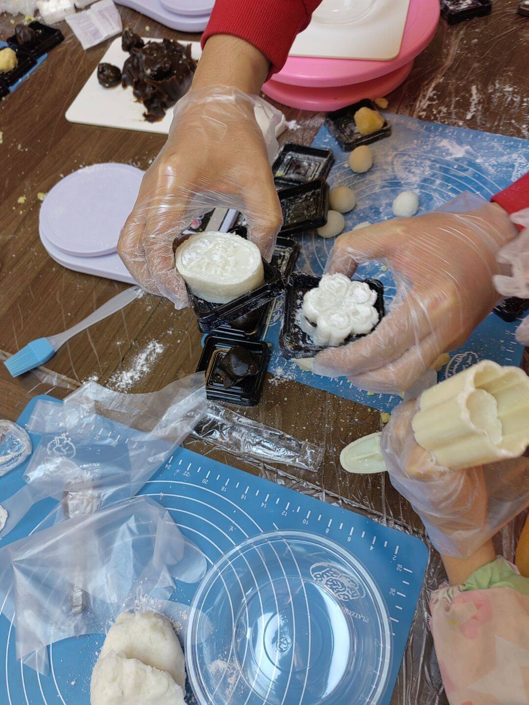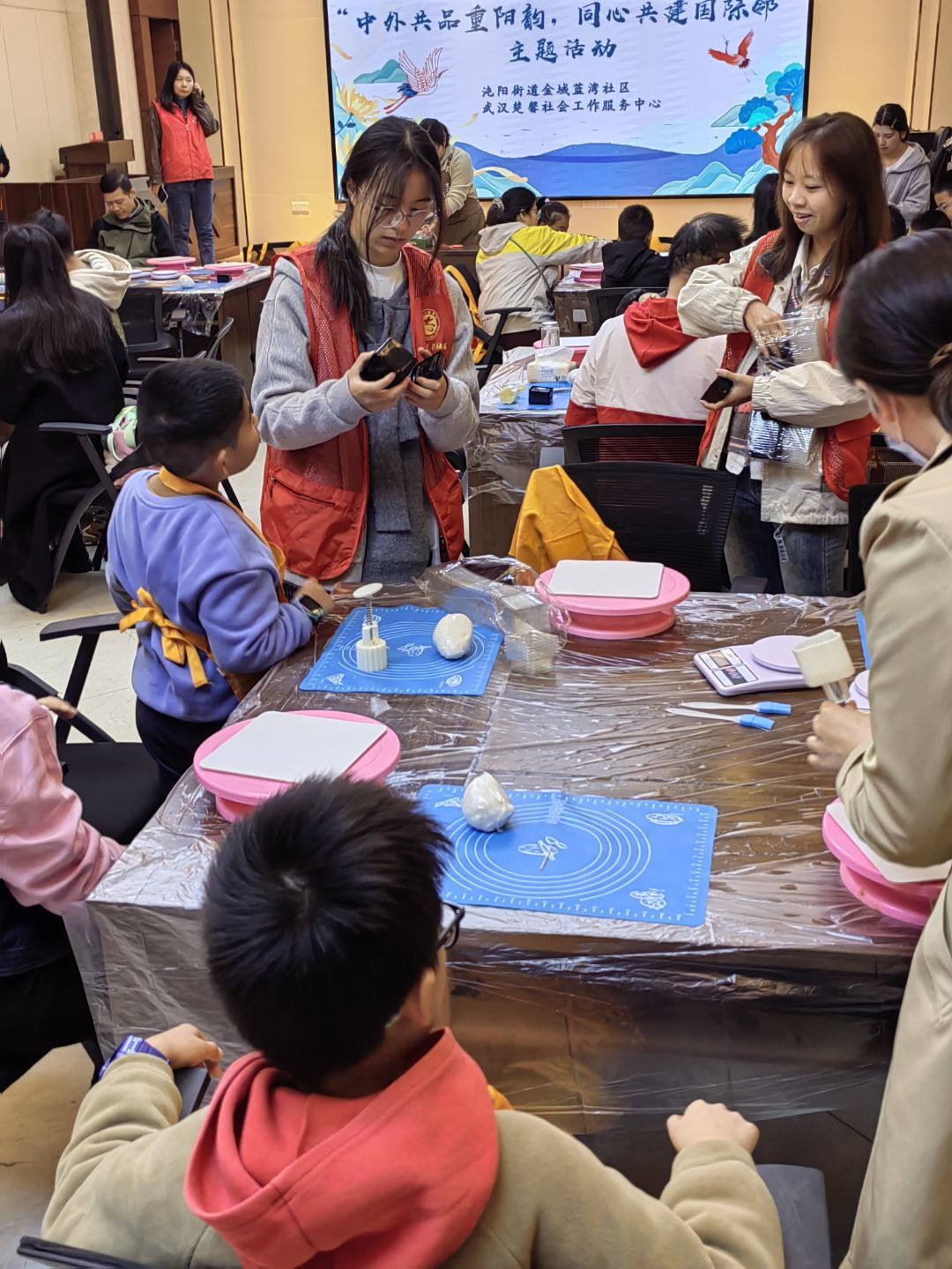 活动中,教育学院的青年志愿者们充分发挥专业优势,化身“文化使者”,为社区内来自不同国家的小朋友和家长们讲解重阳节的历史渊源、习俗寓意与文化内涵。在传统重阳糕制作环节,志愿者们结合食材特性与操作要点,细致演示筛粉、拌料、包馅、压模等步骤,中外家庭自发组队、分工协作,其乐融融。
