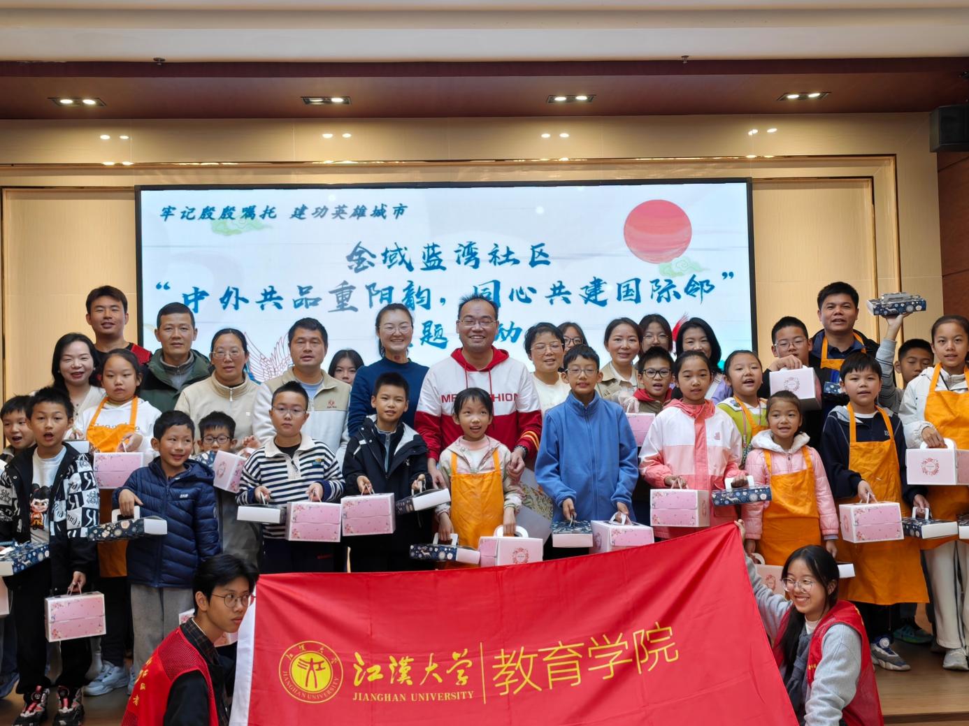 10月26日,江汉大学教育学院青年志愿者协会走进沌阳街道金域蓝湾社区,与社区共同开展“中外共品重阳韵,同心共建国际邻”主题活动。本次活动以重阳传统美食制作为纽带,不仅弘扬了中华民族敬老孝亲的传统美德,也搭建起中外文化交流的桥梁。学院青年学子与社区国际友人一同亲手制作重阳糕、创意蛋糕,在沉浸式体验中感受中华传统文化的独特魅力与温暖内涵。