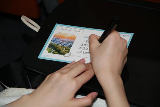 典礼现场,全体院领导为新生代表佩戴院徽。新生们在明信片上立下与未来的约定,写下对大学四年的寄语,投入“时光邮箱”,以这份承诺激励自己脚踏实地,走好大学每一步。
