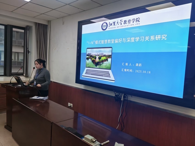 龚菂博士在LS7子会议作专题汇报,汇报主题为《“1+N”模式智慧教室偏好与深度学习关系研究》,研究采用潜在剖面分析法对大学生智慧教室偏好程度进行剖析和分类,并分析了不同偏好类别学生在深度学习上的差异。
