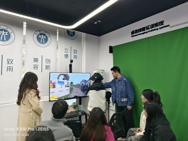 培训伊始,学员们来到人工智能学院党史学习教育基地,在“VR、AI助力,让党建‘活’起来”的特色阵地里,借助全景沉浸式VR技术“穿越”至革命旧址纪念馆、红色遗址等场景。该基地通过绘制“菜单式”红色VR地图,梳理省市辖区内红色地标云端展览资源,方便师生扫码随时随地“打卡”学习;提供“点单式”红色志愿服务,满足各级党组织线下互动、线上交流及云参观的多层次需求;开展“项目式”红色专业实践,将“VR、AI+党建”融入思政课程教学,助力学生提升创新创业能力与政治素养。学员们在交互式、沉浸式体验中重温红色历史,接受革命传统教育洗礼。