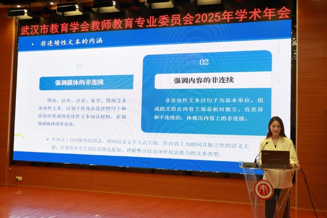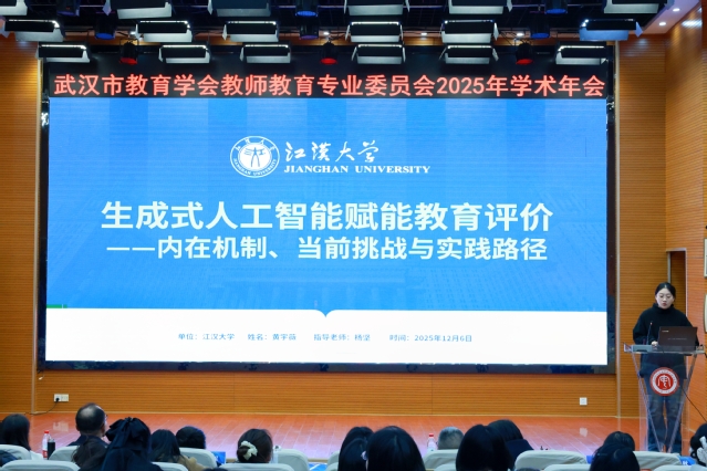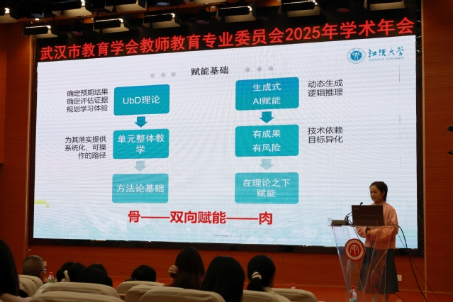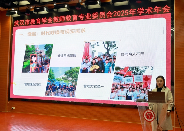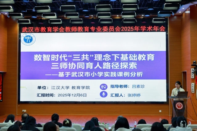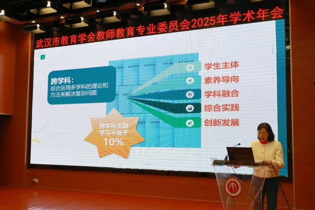 武汉城市职业学院初等教育学院贺汪波教授汇报的题目为《赋能教师跨界成长:高校与中小学协同培养跨学科教师的新范式》,她结合“中国桥文化”主题设计案例,分析了高校与中小学在跨学科教师培养中的错配问题,提出打破壁垒、协同合作的新模式,强调从顶层设计、队伍构建到课程共享全方位推动培养,为教师教育发展提供了新思路。