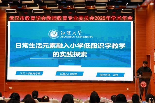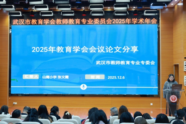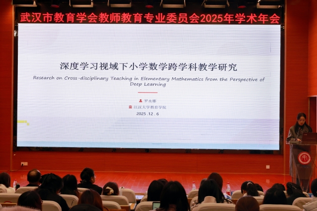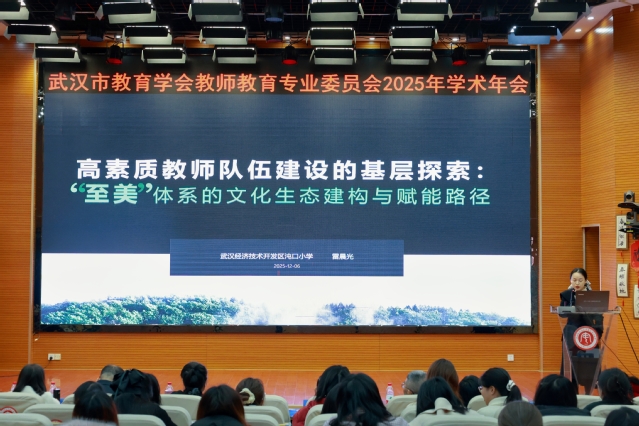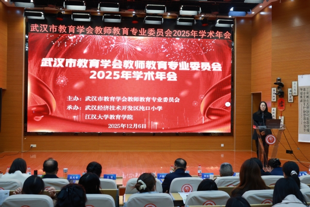 12月6日上午9:00,武汉市教育学会教师教育专业委员会2025年学术年会在武汉经济技术开发区沌口小学一楼报告厅隆重召开。武汉市教育学会副会长卢朝东,武汉经开区教育局党委委员、四级调研员、经开一中党委书记吴天寿,我院院长兰军,武汉城市职业学院初等教育学院贺汪波,武汉市教育学会教师教育专委会理事长李廷军、武汉文理学院教育学院副院长戴戈,沌口小学党总支书记谢艳霞,专业委员会会员以及我院研究生代表等70余人参加大会。大会共分为五个阶段有序开展,依次为开幕式、专家报告、青年教师论坛、研究生论坛及闭幕式。