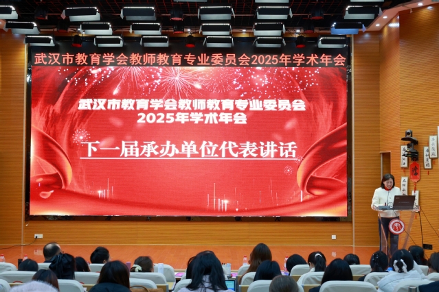 作为下一届年会承办单位代表,武汉城市职业学院初等教育学院贺汪波教授在大会上表示,将全力承办好下一届年会,期待与学会同仁共话教育发展。